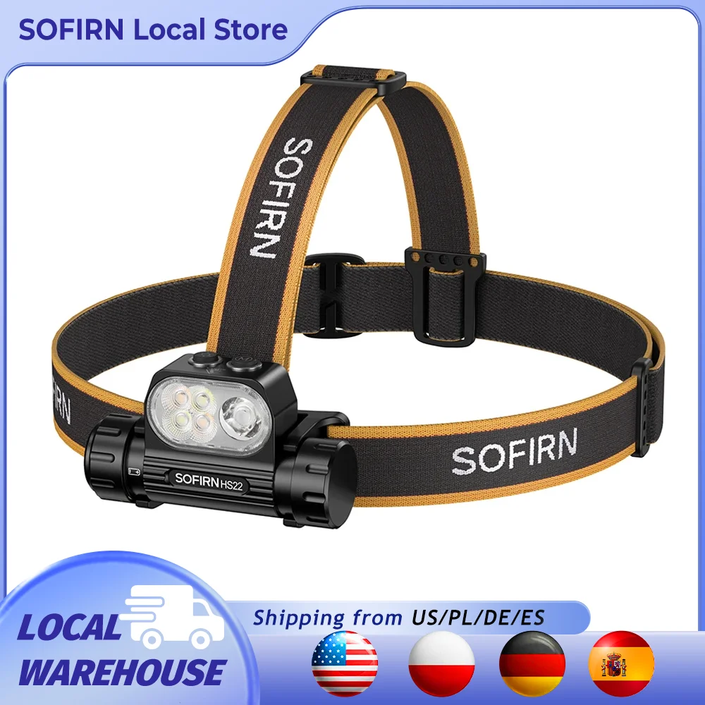 Latarka czołowa SOFIRN HS22 2500lm 18650 4000mAh, regulacja temperatury barwowej LED SFT25R 2700-6000K, podwójny włącznik, bezstopniowa regulacja.