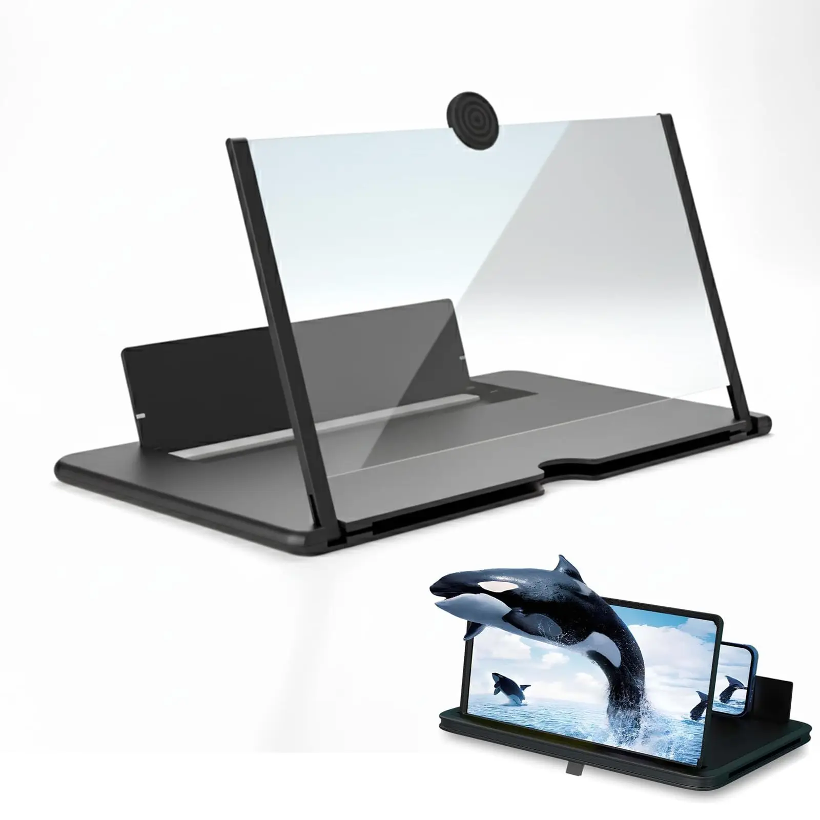Wzmacniacz ekranu telefonu Ultra-HD 3D 12 cali Pro do filmów i wideo, składany ekran z podstawką, obsługuje wszystkie smartfony
