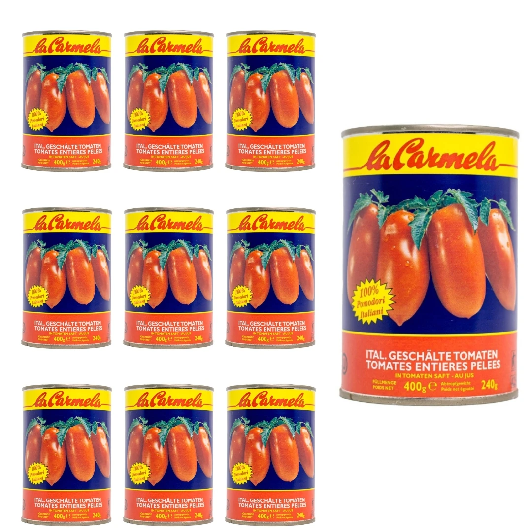 Obrane pomidory bez skóry w puszce Pomidori Pelati Interi 10 x 400g La Carmela
