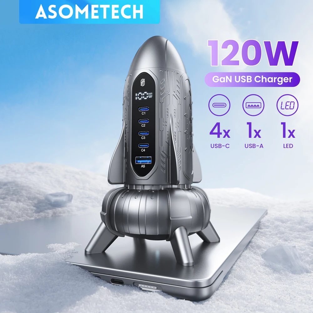 120W GaN USB C Charger 5in1 Desktop Fast Charge Station LED Display USB Type C Charger For iPhone 16 15 Laptop Tablet Samsung