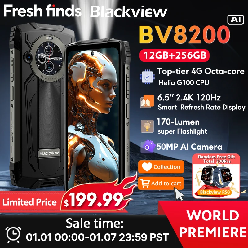 【Światowa premiera】Blackview BV8200 Wytrzymały telefon 6,5″ 2,4K 120Hz Wyświetlacz Helio G100 12 GB 256 GB NFC Latarka Android 14 Telefon komórkowy