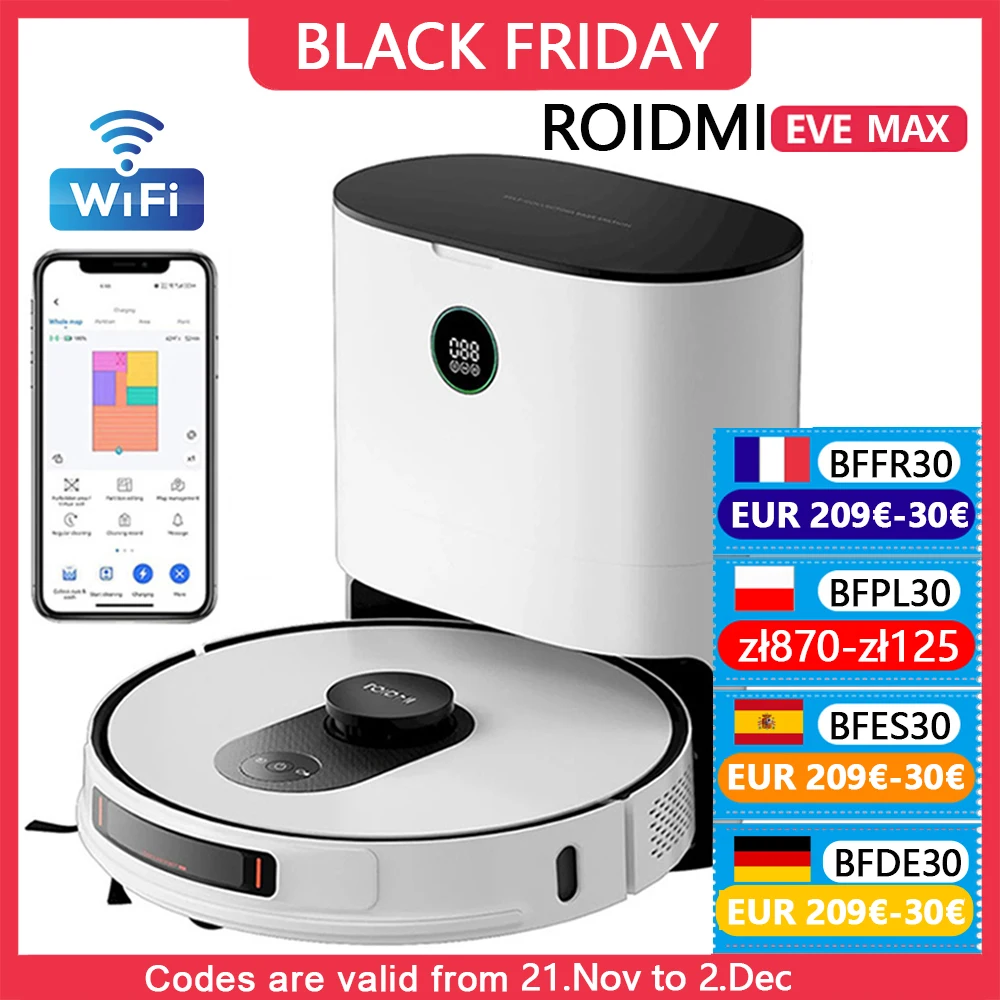 ROIDMI EVE MAX Robot Vacuum Cleaners MOP Wiping Function With Car Suction Station 75 Days,5000 Pa,250Min 3L App LDS Vacuum Robot