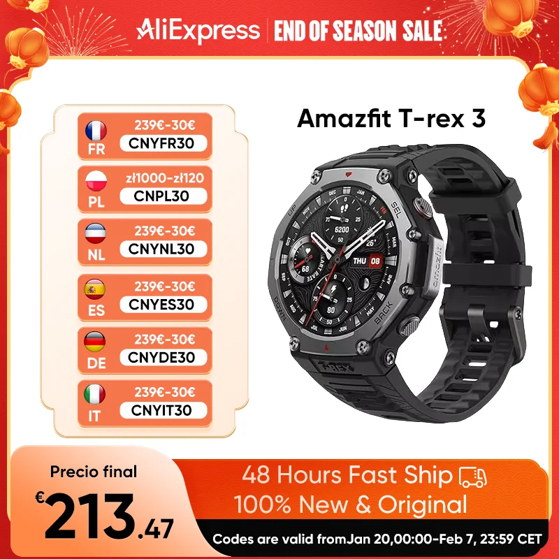 Amazfit T-rex 3 Smartwatch 1.5 ”wyświetlacz AMOLED 27-dniowa żywotność baterii 177-sportowy tryb BT5.2 WIFI GPS 10ATM Downlode APP Outdoor