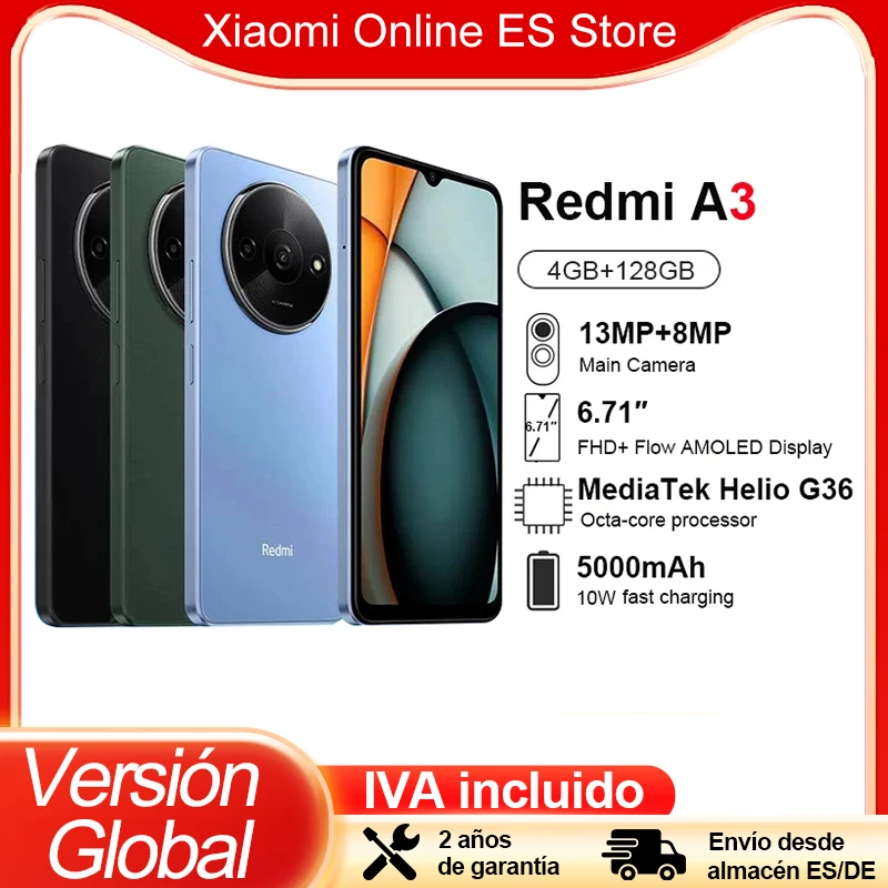 Wersja globalna Xiaomi Redmi A3 4 GB 128 GB Smartfon 6,71 „90 Hz Wyświetlacz Boczny odcisk palca 5000 mAh Szybkie ładowanie Nagrywanie 1920×1080
