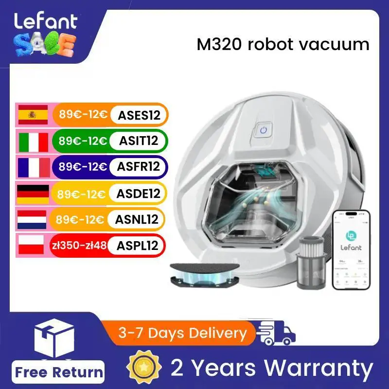 Lefant M320 6000Pa Potężny robot odkurzający z mopem, czas pracy 210 minut, widoczny kosz na śmieci 800 ml, wykrywanie dywanów