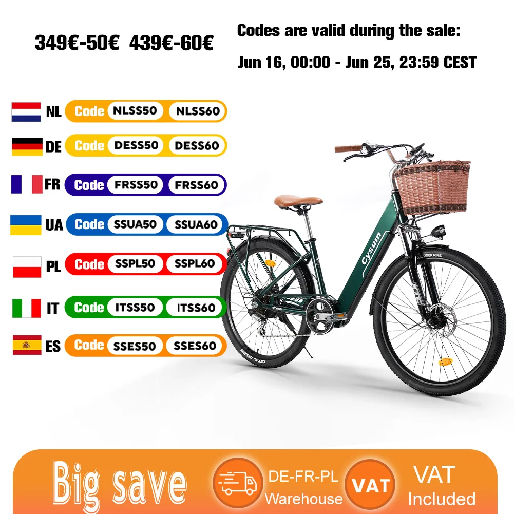 Rower elektryczny Cysum Cityrun 26” dla dorosłych, męski i damski, silnik 250W, prędkość 25km/h, e-bike z akumulatorem litowo-jonowym 36V 10Ah, sportowy rower.
