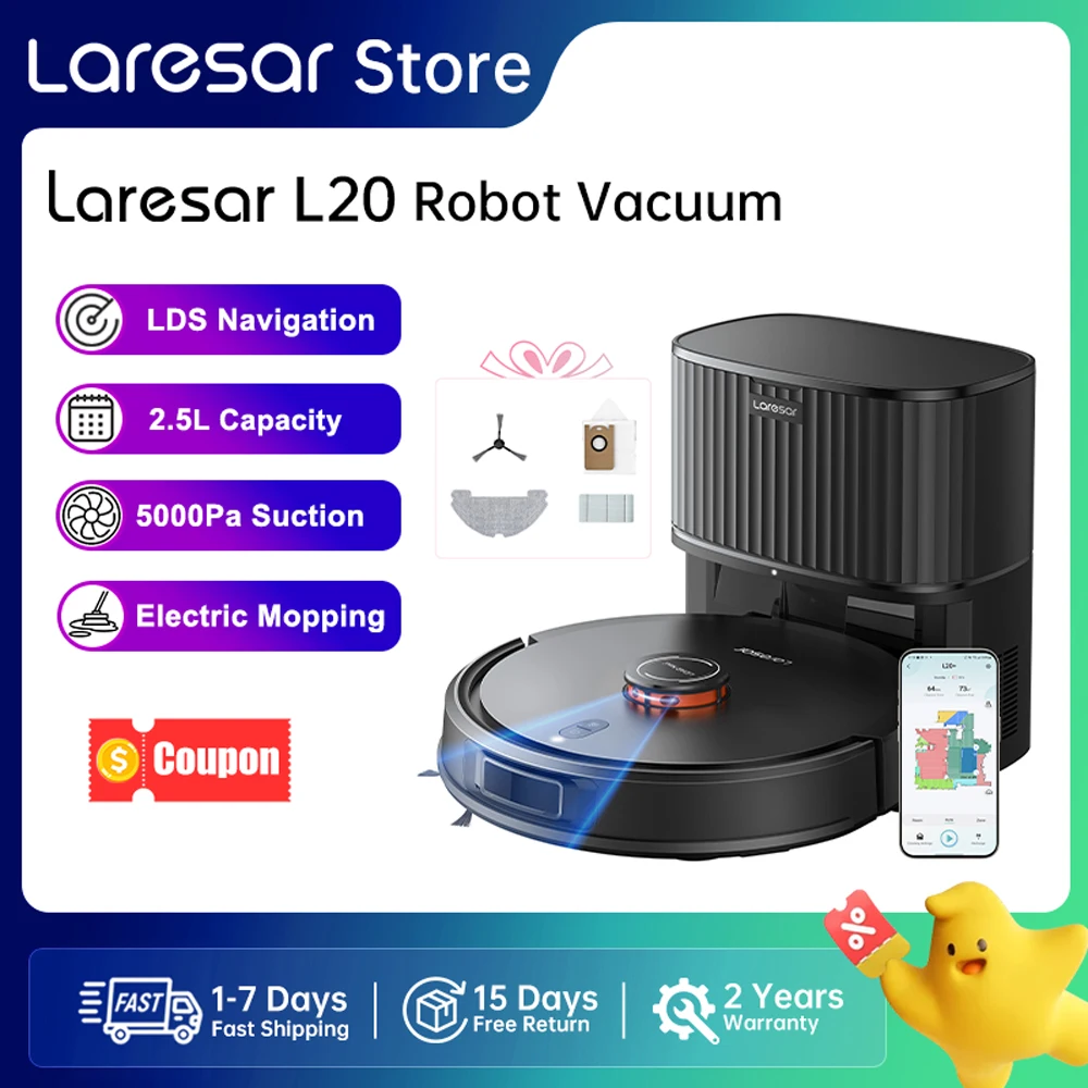 Laresar L20 Robot Vacuum Cleaner 5000Pa Smart LDS Navigation Self-emptying Station APP Control Home Floor Mopping Carpet Clean