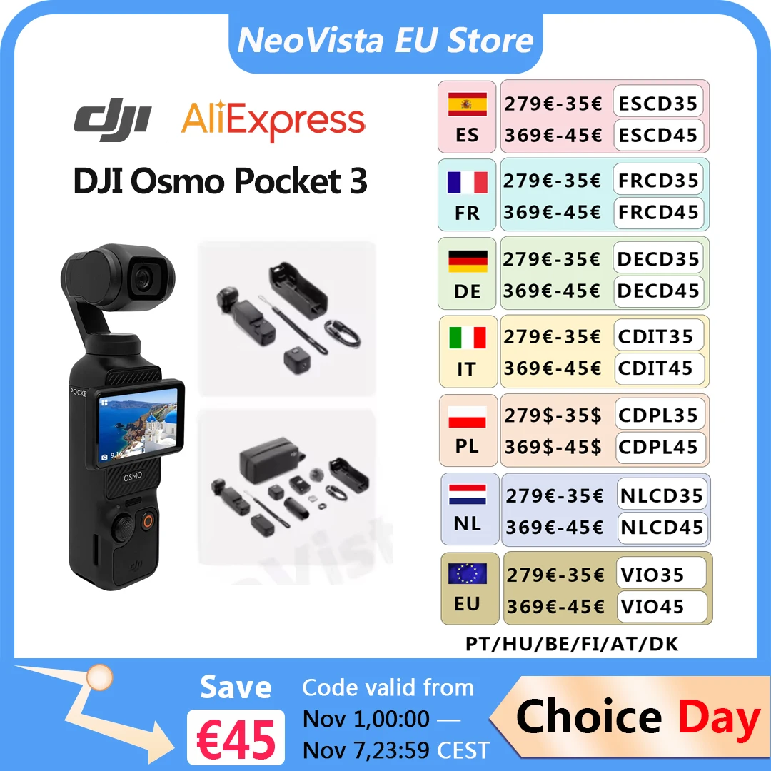 【EU Stock 】DJI OSMO POCKET 3 ActiveTrack 6.0 Three-Axis Stabilization 10-Bit D-Log M Color brand new in stock