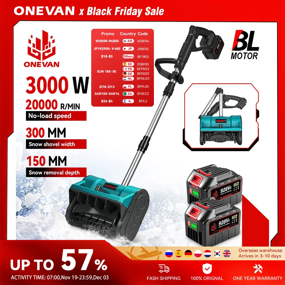 ONEVAN 3000W Brushless Electric Snow Plow Cordless Handheld Yard Street Cleaning Snow Power Tools For Makita 18V Battery Pin