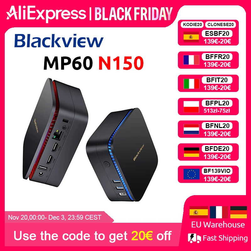 [World Premiere]Blackview MP60 NEW Mini PC Windows 11 PC Intel N150 16GB 512GB SSD 4K HD Doble HDMI Dual-Band 2.4G