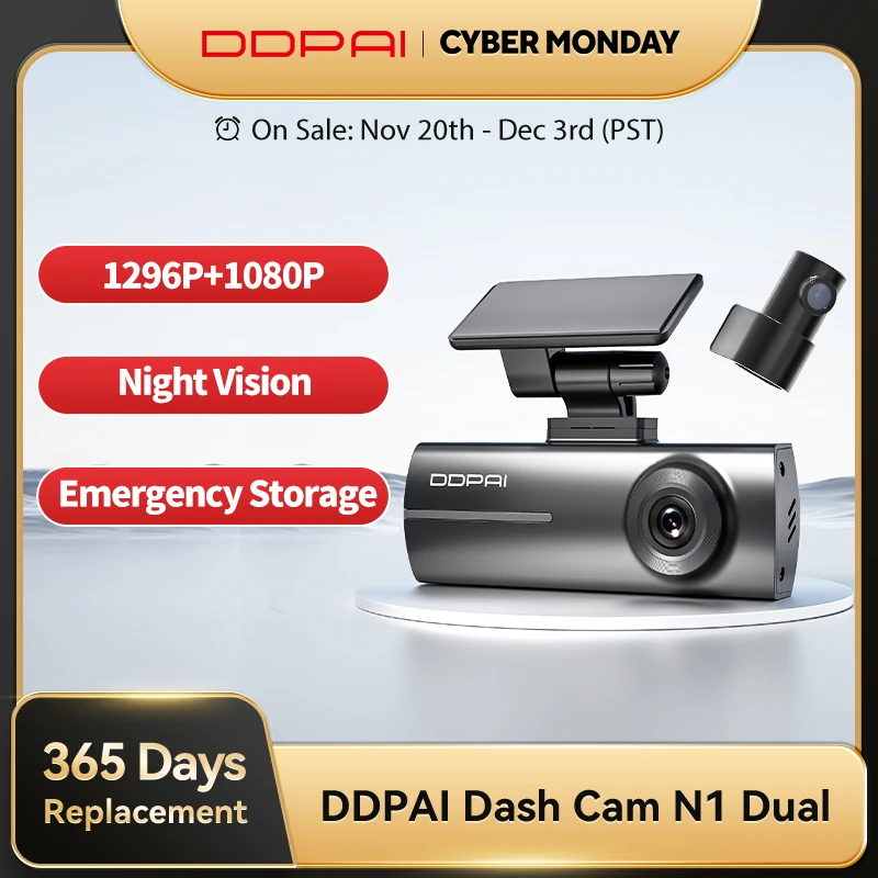 DDPAI Dash Cam N1 Dual Front & Rear Recording NightVIS 1296P Dash Cam Recorder Car DVR App Control