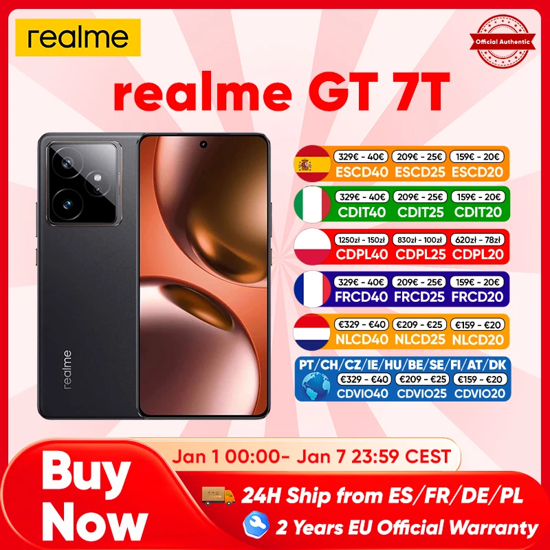 realme GT 7TSmartphone 5G 2025 New Mediatek 8400-Max 7000Mah Titan Battery 120W Ultra Charge 6.8” 120Hz Display Global Version