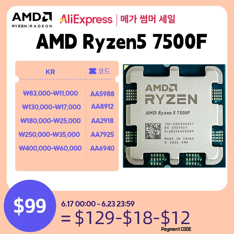 New AMD Ryzen 5 7500F R5 7500F 3.7GHz 6-Core 12-Thread CPU Processor 5NM L3=32M 100-000001015 Socket AM5 Tray but without cooler