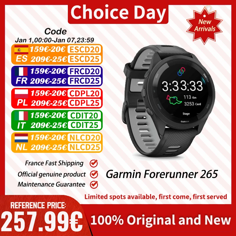 Smartwatch Garmin Forerunner 265 z GPS do sportów outdoorowych, biegania, fitnessu, maratonów, pływania, z pomiarem tętna i saturacji krwi (wersja chińska)