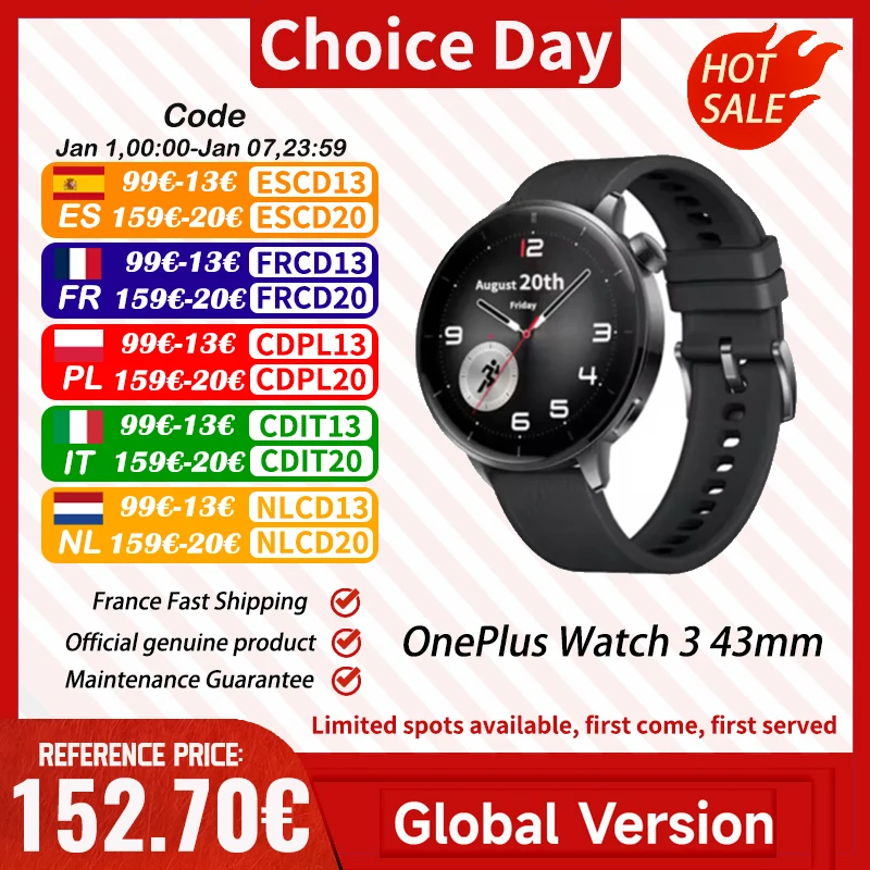 OnePlus Watch 3 43mm Global Version Smartwatch 1.32″ Wyświetlacz AMOLED Obsługa NFC GPS Połączenia Bluetooth SpO2 Wykrywanie upadków