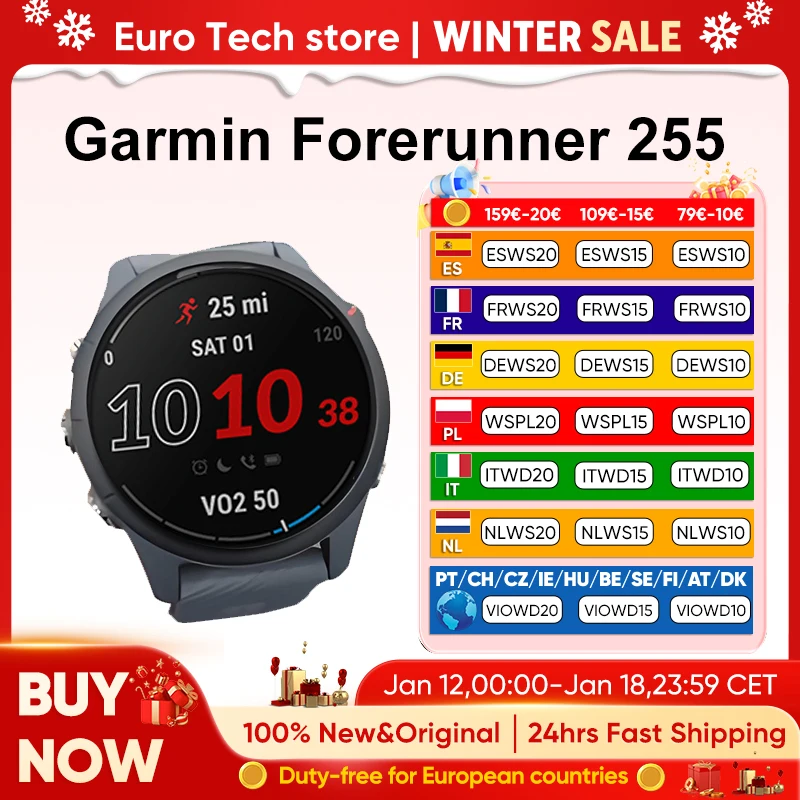 Garmin Forerunner 255 Sports Smartwatch 46mm Kolorowy Ekran O Rozmiarze 1,3 Cala Czas Pracy Baterii 14 Dni 4GB RAM NFC Bluetooth Wifi 5ATM Wodoodporny