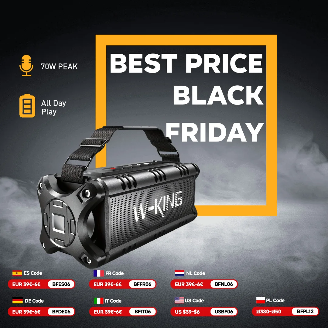 Głośnik Bluetooth W-KING, 90W Peak 50W RMS IPX6 Wodoodporne głośniki Bezprzewodowe głośniki Bluetooth, duży przenośny głośnik zewnętrzny