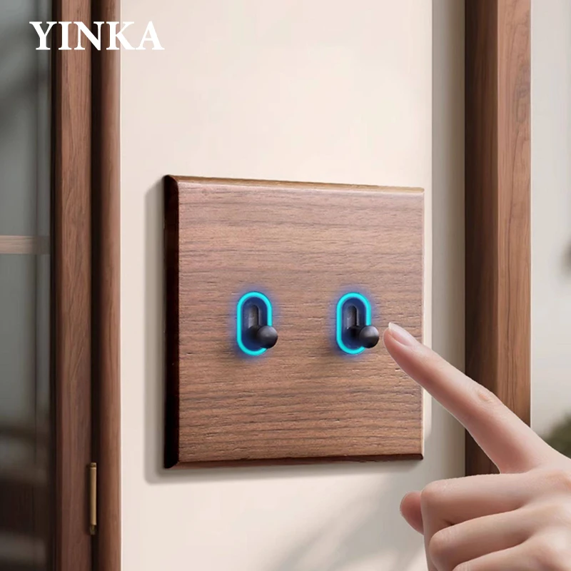 Przełącznik i gniazdko ścienne YINKA z litego drewna, naturalny panel drewniany 86x86mm, nowoczesny styl brytyjski, do domu, hotelu, biura, łatwa instalacja.