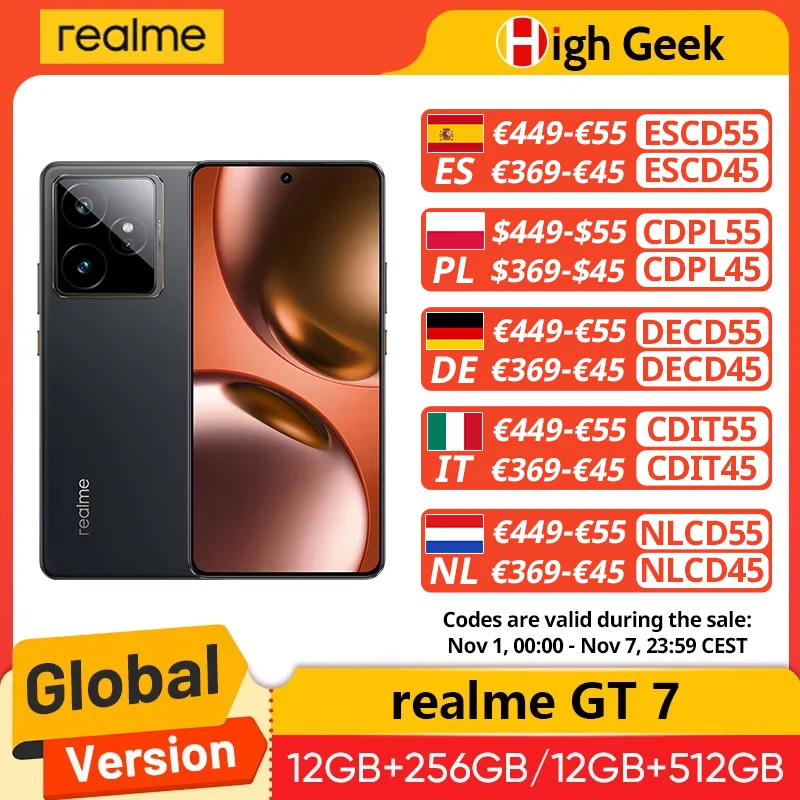 Global Version realme GT 7 5G AI Smartphone MTK Dimensity 9400e 6000nits Pro-Esports Display 7000 mAh Battery 120W Ultra Charge