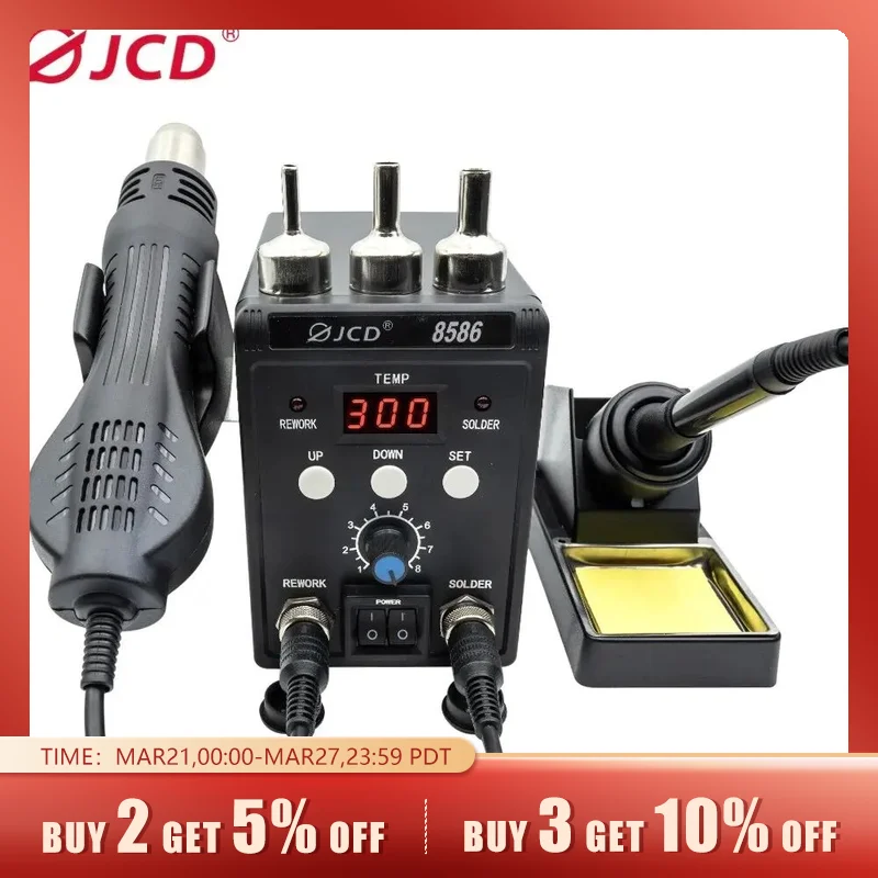 Stacja lutownicza JCD 8586 2 w 1 cyfrowy pistolet dmuchawa gorącego powietrza ESD lutowanie spawanie żelazna rozlutownicza stacja rozlutownicza SMD